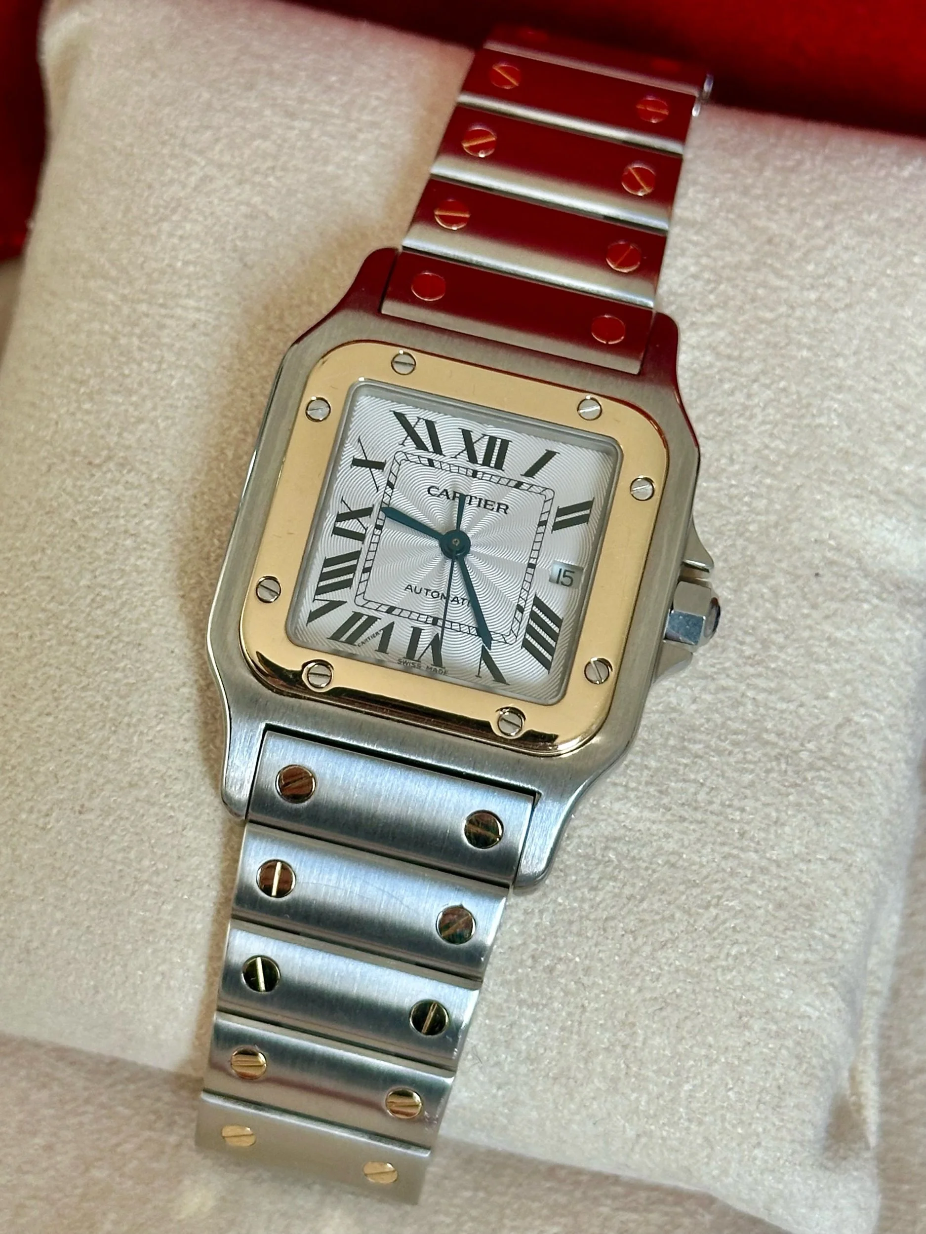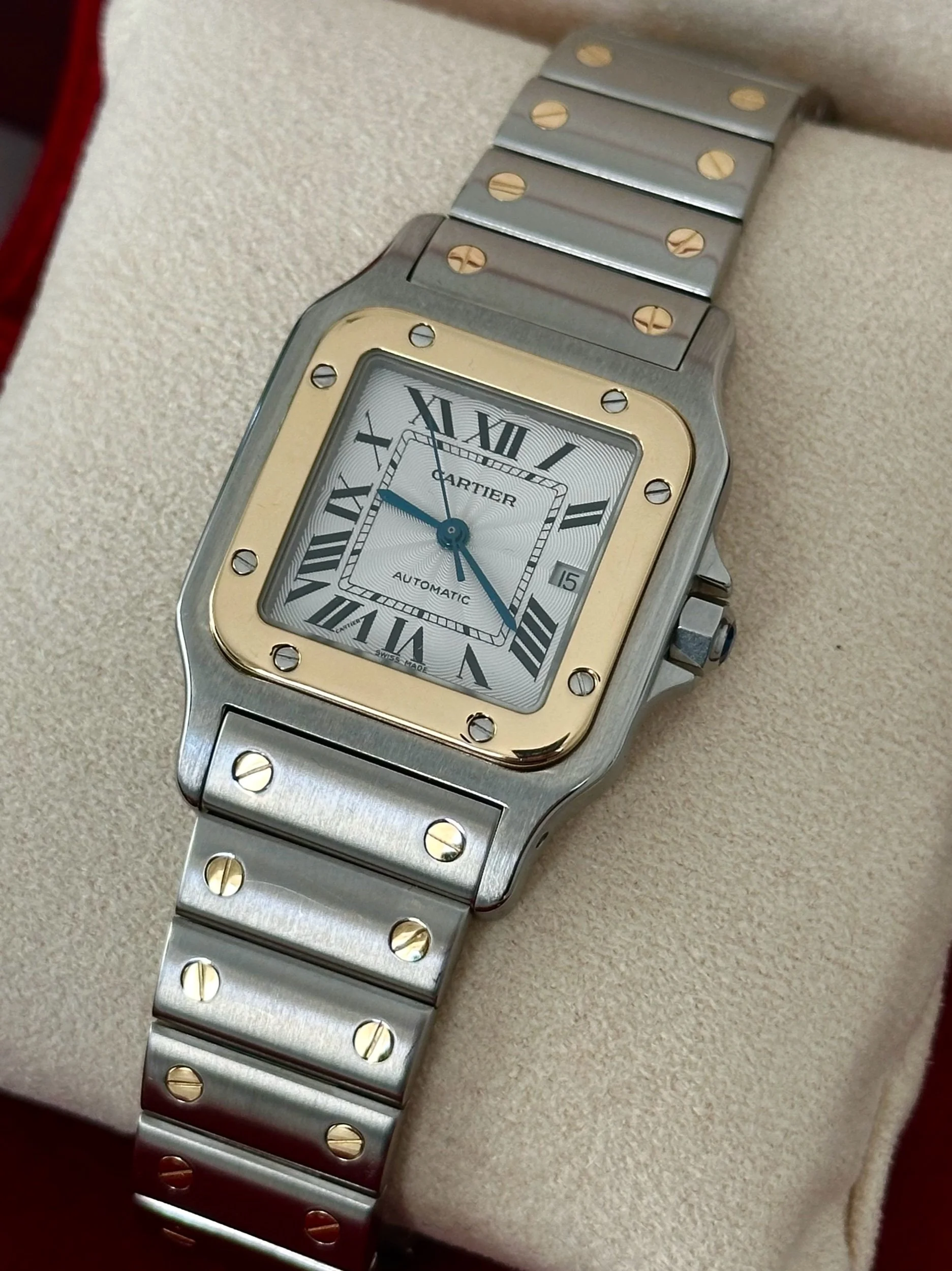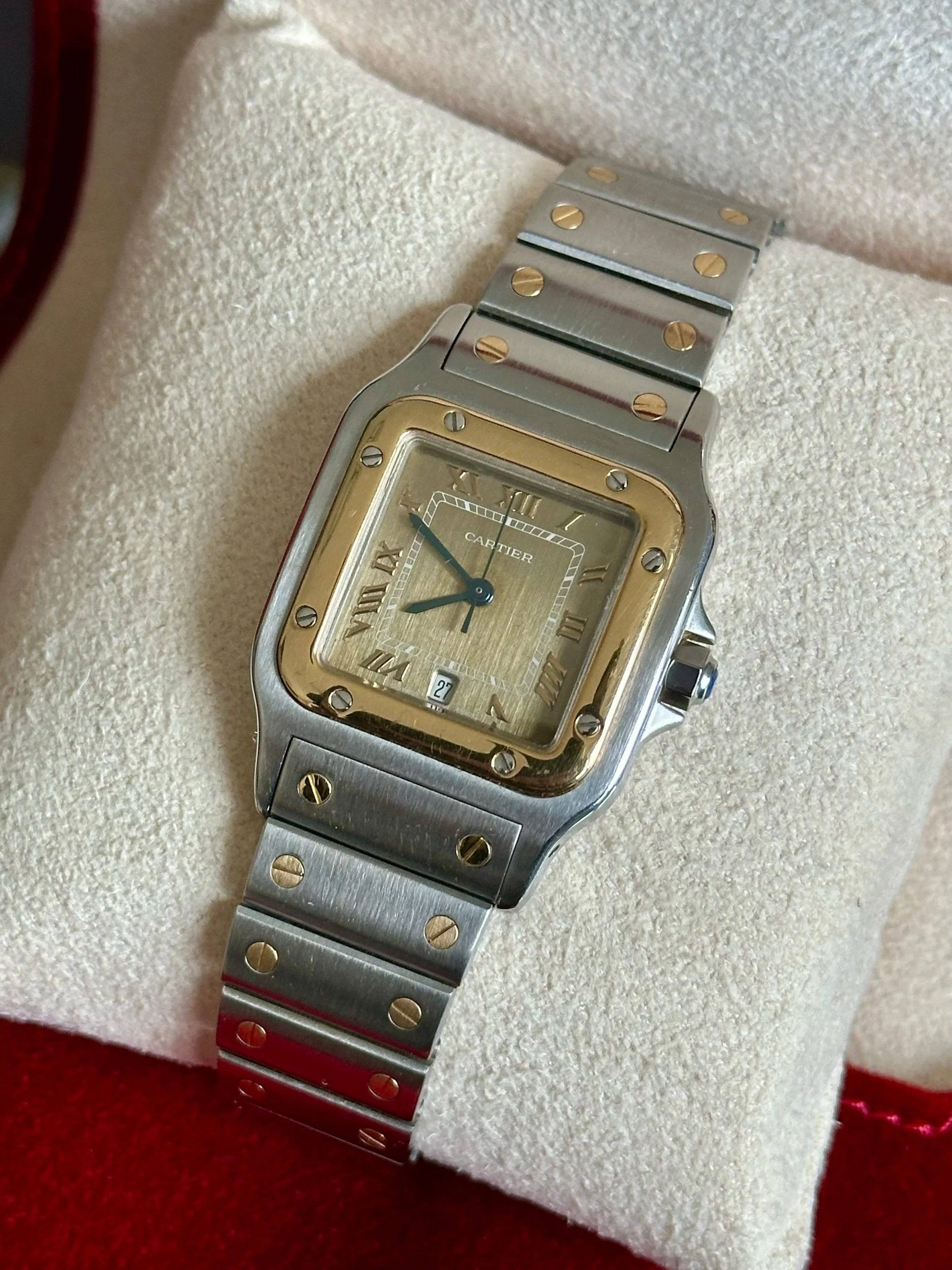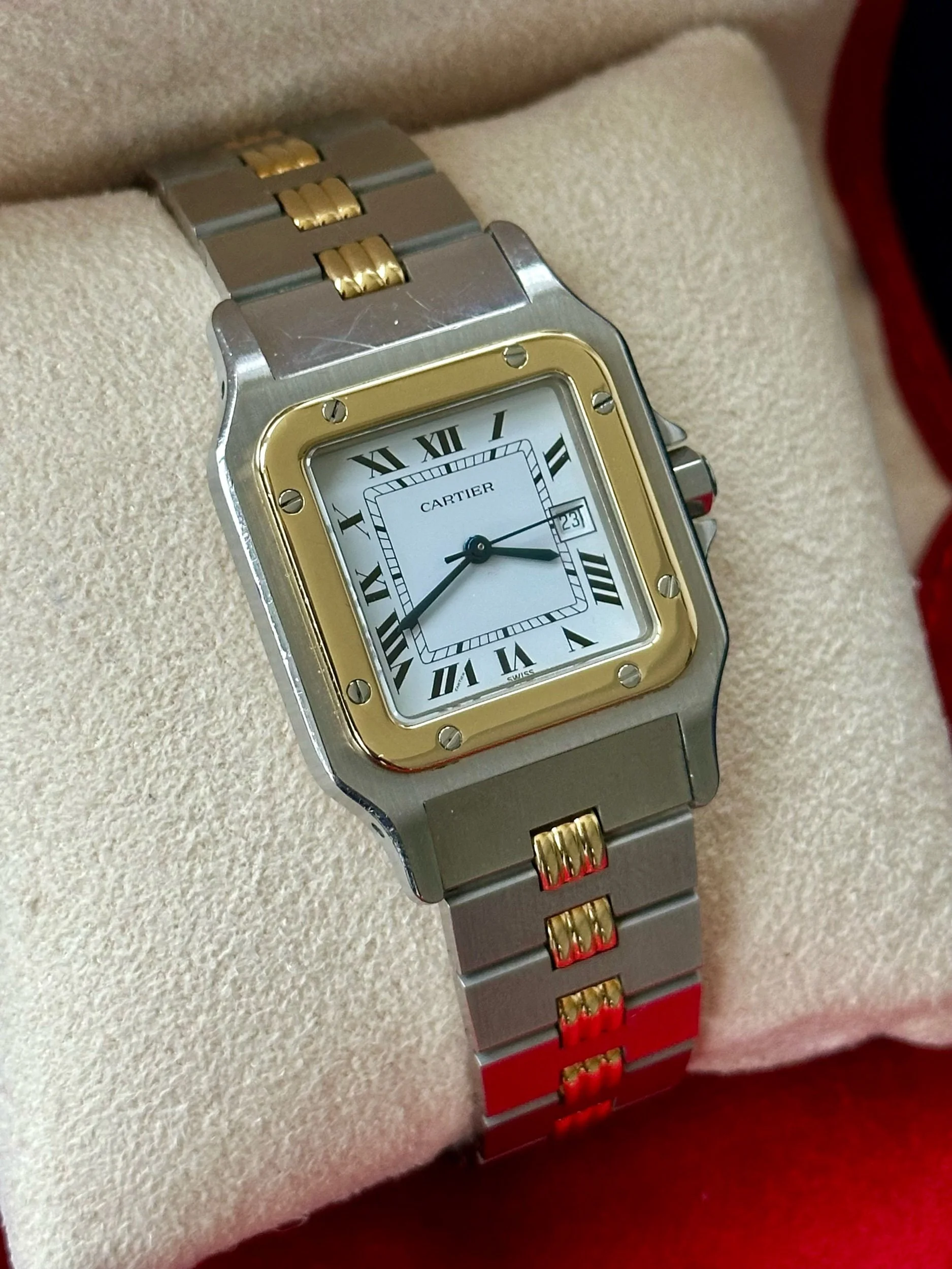 Shop Cartier Santos Carree, 29mm Automatic, Godron Bracelet, Steel & 18ct Gold, 2961. £4,295.00 Sold out Cartier Santos Galbee, 29mm Automatic Steel & 18ct Gold, Guilloche Dial. 2319 £4,195.00 Sold out Cartier Santos Galbee, 29mm Steel & 18ct Gold, Rare Chocolate Dial, Ref 1566. £3,895.00 Cartier Panthere Vendome 18ct Gold & Steel 24mm, Two Row, 166920. £2,295.00 Cartier Santos Demoiselle 26mm Stainless Steel Bracelet Watch - 2701. £2,150.00 Breitling Chronomat 36mm Automatic With Box & Papers. RRP £8500 ( A10380591A1A1) £4,895.00 IWC Ingenieur 34mm Automatic Chronometer - With Box & Papers. Ref 352101 £5,295.00 Cartier Santos Carree, 24mm Automatic Stainless Steel Watch - 0901 £2,495.00 Sold out Omega Constellation 14ct Gold & Steel Quartz Chronometer, Ref DD398 0855. £950.00 Omega De Ville Stainless Steel Quartz Wristwatch: Ref 192.0002, Calibre 1325. £425.00 Omega De Ville Prestige 27mm, Box & Papers: Ref 424.10.27.60.04.001 £1,095.00 Hamilton Khaki Pioneer Chronograph 42mm “Harrison Ford” Automatic Wristwatch £795.00 Universal Geneve - Polerouter Genève Automatic Date 34mm - Ref 104604 £1,195.00 Universal Geneve GMT World Time 40mm: Ref 273.435 £1,995.00 JLC Jaeger Lecoultre Reverso Grand Taille 18ct Gold & Steel, 42x26mm, 270.5.62 £4,995.00 Sold out Cartier Cougar 33mm Steel & 18ct Gold Watch, Box & Papers. Ref 187904. £2,495.00 Sold out Cartier Panthere Small (22mm), 18ct Gold. Box & Papers, 2025 Service, Ref 6692. £3,795.00 Sold out Cartier Panthere Vendome 30mm Steel & 18ct Gold Watch, Box & Papers, 183964. £2,795.00 Sold out Rolex 26mm Datejust Steel & 18ct Gold - Ref 69173, Calibre 2135. £3,250.00 Sold out IWC 36mm Pilot’s Flieger Chronograph, Stainless Steel, Quartz. Ref: 3741 £2,295.00 Sold out Cartier Panthere Small 23mm Stainless Steel Watch. Ref 4022. £2,695.00 Sold out Cartier Panthere Small (23mm) Diamonds (W4PN0007) £4,350.00 Sold out Cartier Santos Galbee 24mm Automatic Watch Guilloche Dial, 2423. £2,550.00 Sold out Cartier Santos Large Automatic ADLC, WSSA0039 4072. £4,550.00 Sold out Cartier Santos 100, 33mm Automatic Wristwatch, Ref 2878. £2,995.00 Sold out Cartier Santos Dumont Large Quartz Watch - WSSA0022. Box & Papers , 2024 Model. £3,250.00 Sold out Cartier Ronde Solo 36mm Stainless Steel & Black Leather Watch: Ref 2934. £1,750.00 Sold out OMEGA Constellation Globemaster 39mm Blue Wristwatch £4,295.00 Sold out OMEGA Seamaster Aqua Terra 38mm Silver Wristwatch. £3,795.00 Sold out Omega Constellation 25mm Diamond Watch. 131.10.25.60.55.001 £2,250.00 Sold out Omega De Ville Prestige 22mm: Diamonds & Mother of Pearl, ref 4575.75.00 £1,795.00 Sold out Omega Seamaster De Ville 18ct Gold Cased Automatic Watch - Serviced £2,595.00 Sold out Jaeger-LeCoultre Master-Quartz 39mm (1970s) Wristwatch £850.00 Sold out Omega De Ville 33mm, Yellow Gold & Steel Watch - Ref 7314.31.00 £795.00 Sold out Omega DeVille Quartz Date Wristwatch, Ref 192.0011. £495.00 Sold out Omega Constellation Automatic 37mm, Octagonal TV Case Watch. Ref 166.0234 £795.00 Omega Constellation Automatic Square Wristwatch, Ref 168.047 £750.00 Omega 9ct Gold Cocktail Wristwatch With Original Box & Papers £350.00 Sold out Universal Geneve 34mm Quartz Stainless Steel Watch, Ref 879.210. £495.00