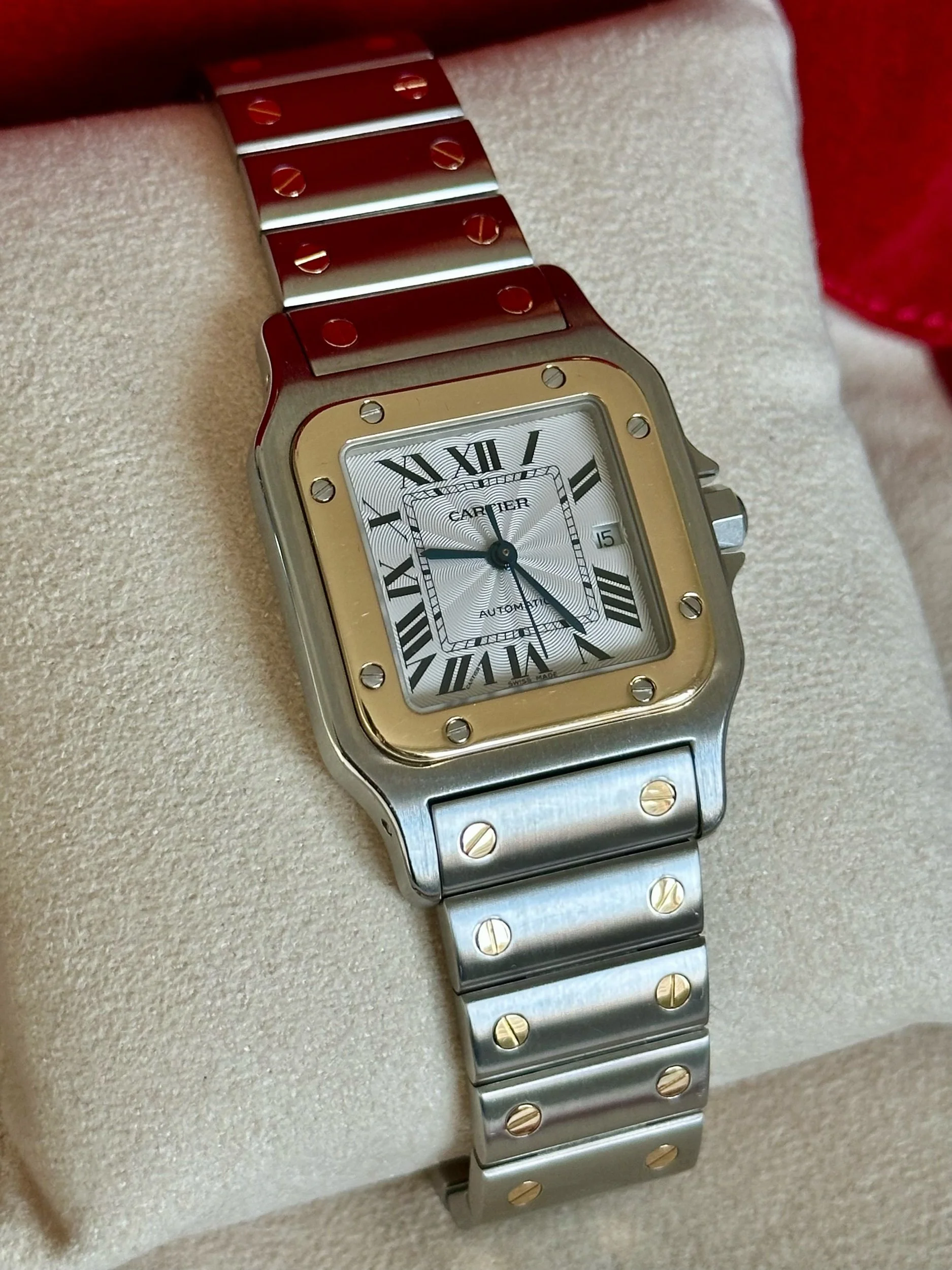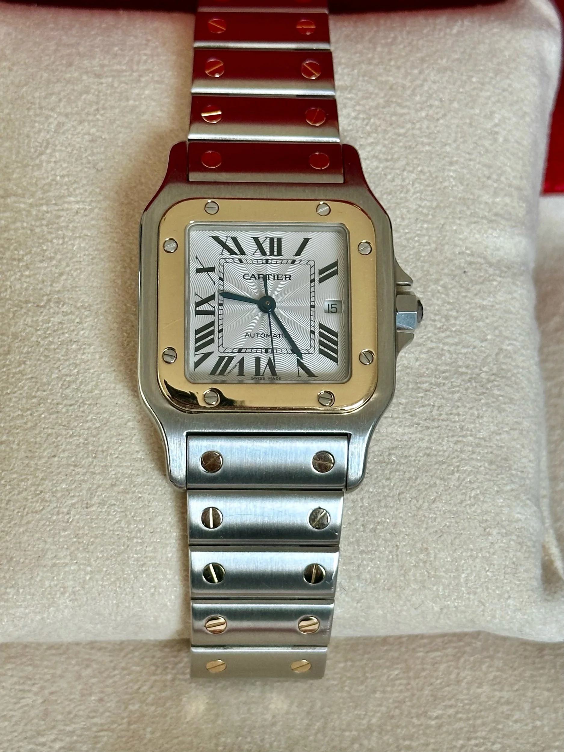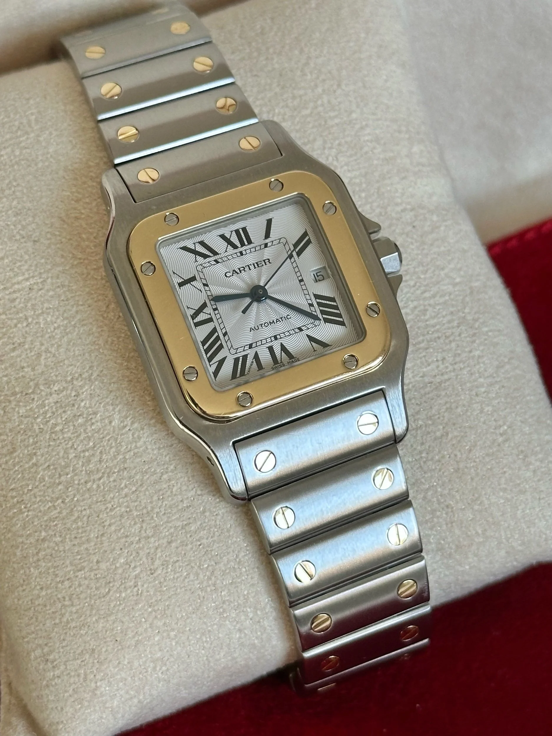 Shop Cartier Santos Carree, 29mm Automatic, Godron Bracelet, Steel & 18ct Gold, 2961. £4,295.00 Sold out Cartier Santos Galbee, 29mm Automatic Steel & 18ct Gold, Guilloche Dial. 2319 £4,195.00 Sold out Cartier Santos Galbee, 29mm Steel & 18ct Gold, Rare Chocolate Dial, Ref 1566. £3,895.00 Cartier Panthere Vendome 18ct Gold & Steel 24mm, Two Row, 166920. £2,295.00 Cartier Santos Demoiselle 26mm Stainless Steel Bracelet Watch - 2701. £2,150.00 Breitling Chronomat 36mm Automatic With Box & Papers. RRP £8500 ( A10380591A1A1) £4,895.00 IWC Ingenieur 34mm Automatic Chronometer - With Box & Papers. Ref 352101 £5,295.00 Cartier Santos Carree, 24mm Automatic Stainless Steel Watch - 0901 £2,495.00 Sold out Omega Constellation 14ct Gold & Steel Quartz Chronometer, Ref DD398 0855. £950.00 Omega De Ville Stainless Steel Quartz Wristwatch: Ref 192.0002, Calibre 1325. £425.00 Omega De Ville Prestige 27mm, Box & Papers: Ref 424.10.27.60.04.001 £1,095.00 Hamilton Khaki Pioneer Chronograph 42mm “Harrison Ford” Automatic Wristwatch £795.00 Universal Geneve - Polerouter Genève Automatic Date 34mm - Ref 104604 £1,195.00 Universal Geneve GMT World Time 40mm: Ref 273.435 £1,995.00 JLC Jaeger Lecoultre Reverso Grand Taille 18ct Gold & Steel, 42x26mm, 270.5.62 £4,995.00 Sold out Cartier Cougar 33mm Steel & 18ct Gold Watch, Box & Papers. Ref 187904. £2,495.00 Sold out Cartier Panthere Small (22mm), 18ct Gold. Box & Papers, 2025 Service, Ref 6692. £3,795.00 Sold out Cartier Panthere Vendome 30mm Steel & 18ct Gold Watch, Box & Papers, 183964. £2,795.00 Sold out Rolex 26mm Datejust Steel & 18ct Gold - Ref 69173, Calibre 2135. £3,250.00 Sold out IWC 36mm Pilot’s Flieger Chronograph, Stainless Steel, Quartz. Ref: 3741 £2,295.00 Sold out Cartier Panthere Small 23mm Stainless Steel Watch. Ref 4022. £2,695.00 Sold out Cartier Panthere Small (23mm) Diamonds (W4PN0007) £4,350.00 Sold out Cartier Santos Galbee 24mm Automatic Watch Guilloche Dial, 2423. £2,550.00 Sold out Cartier Santos Large Automatic ADLC, WSSA0039 4072. £4,550.00 Sold out Cartier Santos 100, 33mm Automatic Wristwatch, Ref 2878. £2,995.00 Sold out Cartier Santos Dumont Large Quartz Watch - WSSA0022. Box & Papers , 2024 Model. £3,250.00 Sold out Cartier Ronde Solo 36mm Stainless Steel & Black Leather Watch: Ref 2934. £1,750.00 Sold out OMEGA Constellation Globemaster 39mm Blue Wristwatch £4,295.00 Sold out OMEGA Seamaster Aqua Terra 38mm Silver Wristwatch. £3,795.00 Sold out Omega Constellation 25mm Diamond Watch. 131.10.25.60.55.001 £2,250.00 Sold out Omega De Ville Prestige 22mm: Diamonds & Mother of Pearl, ref 4575.75.00 £1,795.00 Sold out Omega Seamaster De Ville 18ct Gold Cased Automatic Watch - Serviced £2,595.00 Sold out Jaeger-LeCoultre Master-Quartz 39mm (1970s) Wristwatch £850.00 Sold out Omega De Ville 33mm, Yellow Gold & Steel Watch - Ref 7314.31.00 £795.00 Sold out Omega DeVille Quartz Date Wristwatch, Ref 192.0011. £495.00 Sold out Omega Constellation Automatic 37mm, Octagonal TV Case Watch. Ref 166.0234 £795.00 Omega Constellation Automatic Square Wristwatch, Ref 168.047 £750.00 Omega 9ct Gold Cocktail Wristwatch With Original Box & Papers £350.00 Sold out Universal Geneve 34mm Quartz Stainless Steel Watch, Ref 879.210. £495.00