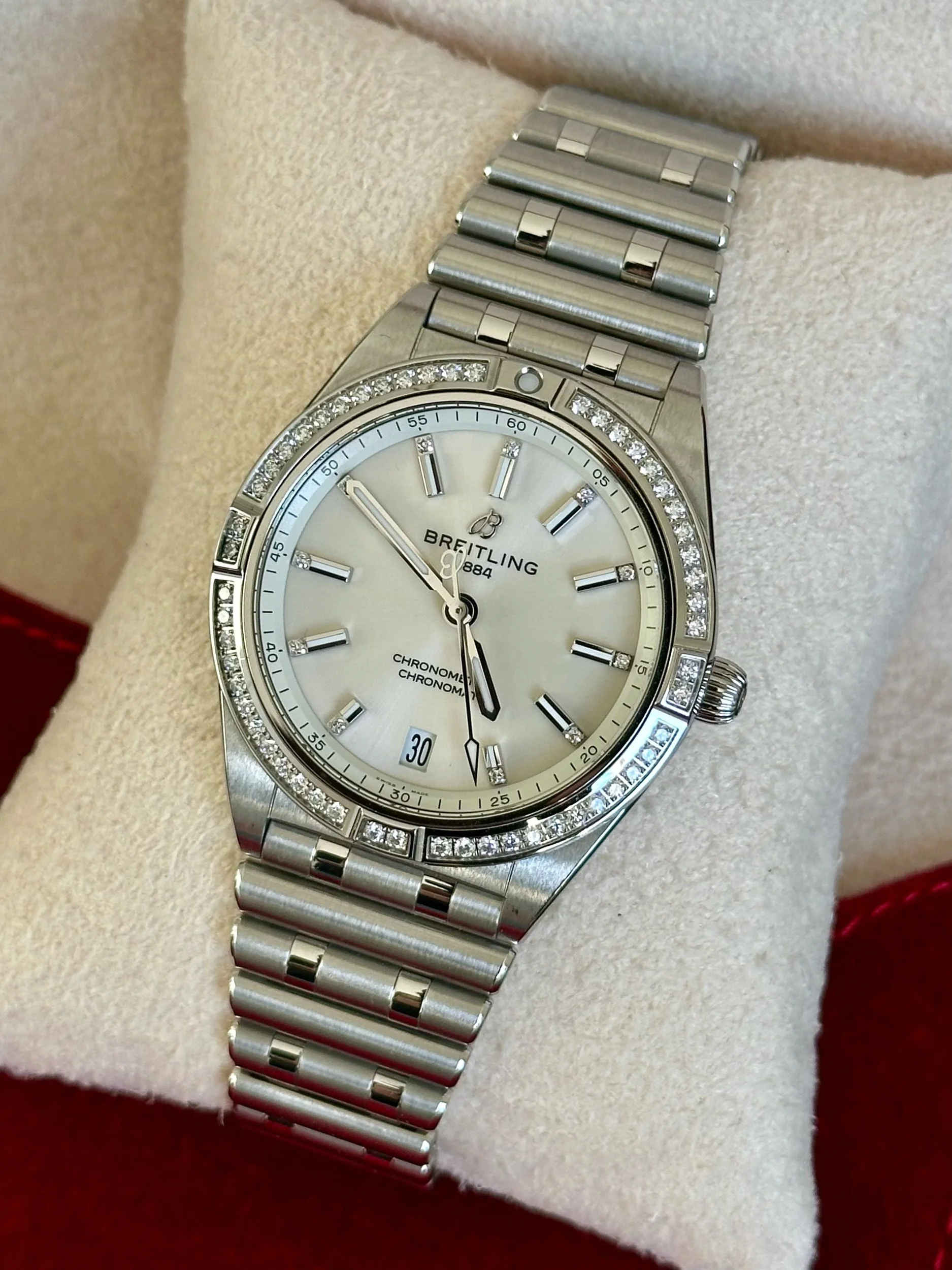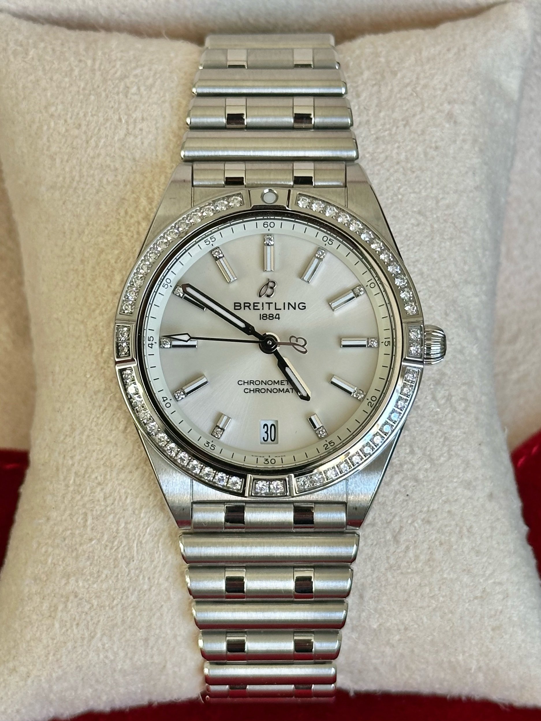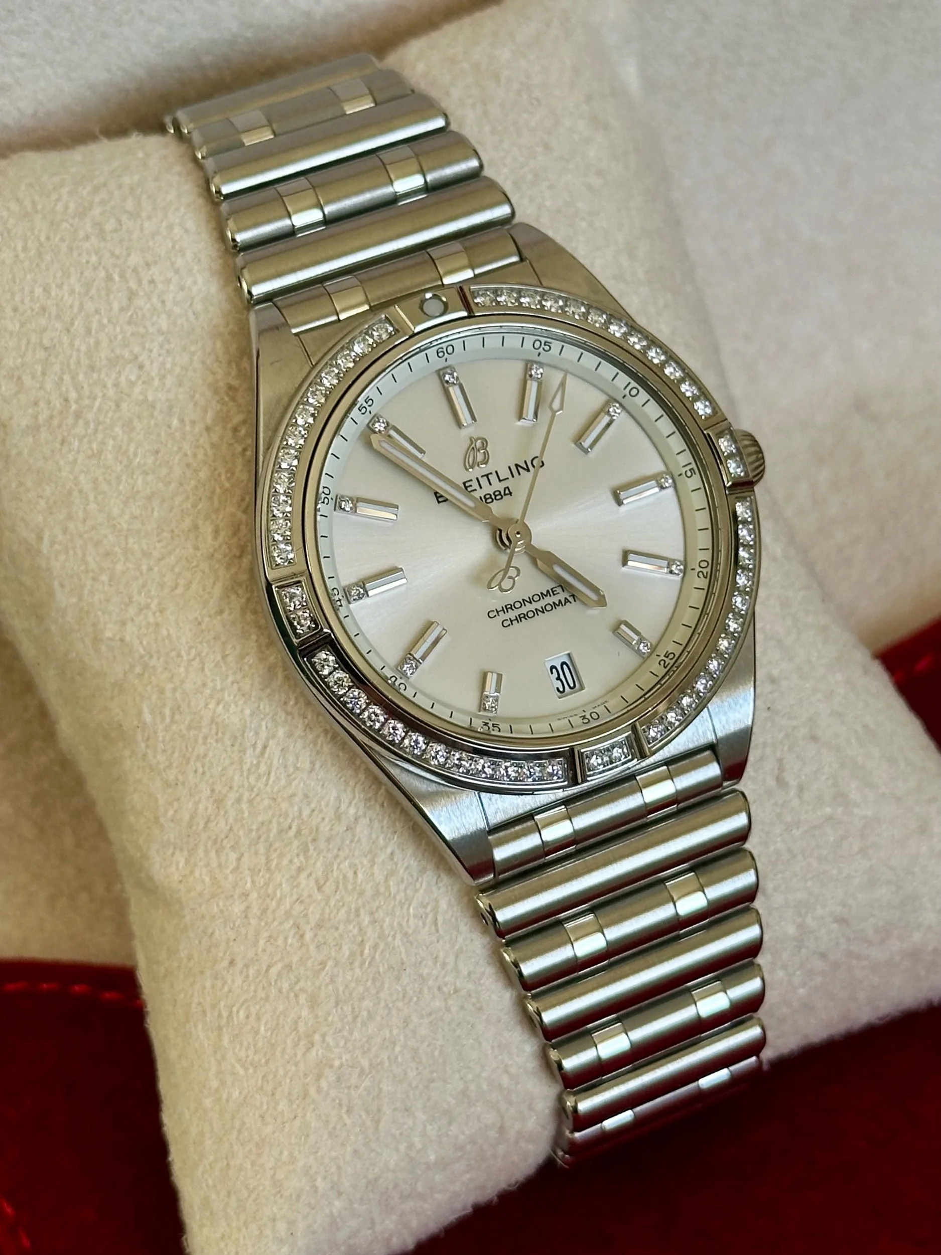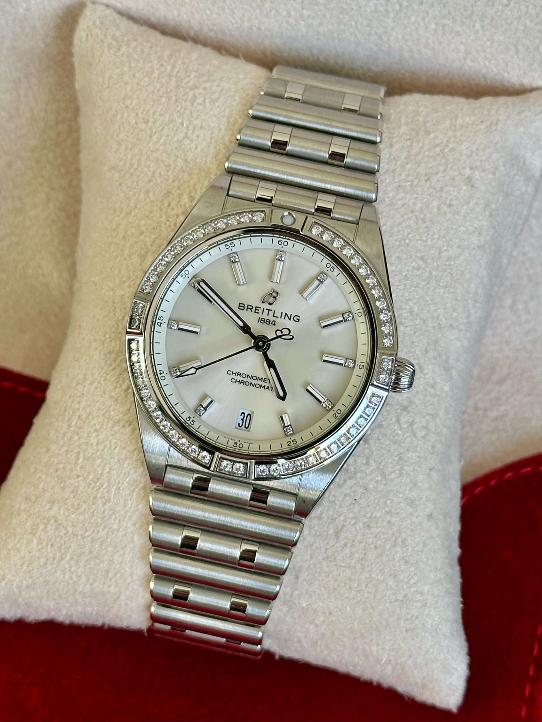 Shop Cartier Santos Carree, 29mm Automatic, Godron Bracelet, Steel & 18ct Gold, 2961. £4,295.00 Sold out Cartier Santos Galbee, 29mm Automatic Steel & 18ct Gold, Guilloche Dial. 2319 £4,195.00 Sold out Cartier Santos Galbee, 29mm Steel & 18ct Gold, Rare Chocolate Dial, Ref 1566. £3,895.00 Cartier Panthere Vendome 18ct Gold & Steel 24mm, Two Row, 166920. £2,295.00 Cartier Santos Demoiselle 26mm Stainless Steel Bracelet Watch - 2701. £2,150.00 Breitling Chronomat 36mm Automatic With Box & Papers. RRP £8500 ( A10380591A1A1) £4,895.00 IWC Ingenieur 34mm Automatic Chronometer - With Box & Papers. Ref 352101 £5,295.00 Cartier Santos Carree, 24mm Automatic Stainless Steel Watch - 0901 £2,495.00 Sold out Omega Constellation 14ct Gold & Steel Quartz Chronometer, Ref DD398 0855. £950.00 Omega De Ville Stainless Steel Quartz Wristwatch: Ref 192.0002, Calibre 1325. £425.00 Omega De Ville Prestige 27mm, Box & Papers: Ref 424.10.27.60.04.001 £1,095.00 Hamilton Khaki Pioneer Chronograph 42mm “Harrison Ford” Automatic Wristwatch £795.00 Universal Geneve - Polerouter Genève Automatic Date 34mm - Ref 104604 £1,195.00 Universal Geneve GMT World Time 40mm: Ref 273.435 £1,995.00 JLC Jaeger Lecoultre Reverso Grand Taille 18ct Gold & Steel, 42x26mm, 270.5.62 £4,995.00 Sold out Cartier Cougar 33mm Steel & 18ct Gold Watch, Box & Papers. Ref 187904. £2,495.00 Sold out Cartier Panthere Small (22mm), 18ct Gold. Box & Papers, 2025 Service, Ref 6692. £3,795.00 Sold out Cartier Panthere Vendome 30mm Steel & 18ct Gold Watch, Box & Papers, 183964. £2,795.00 Sold out Rolex 26mm Datejust Steel & 18ct Gold - Ref 69173, Calibre 2135. £3,250.00 Sold out IWC 36mm Pilot’s Flieger Chronograph, Stainless Steel, Quartz. Ref: 3741 £2,295.00 Sold out Cartier Panthere Small 23mm Stainless Steel Watch. Ref 4022. £2,695.00 Sold out Cartier Panthere Small (23mm) Diamonds (W4PN0007) £4,350.00 Sold out Cartier Santos Galbee 24mm Automatic Watch Guilloche Dial, 2423. £2,550.00 Sold out Cartier Santos Large Automatic ADLC, WSSA0039 4072. £4,550.00 Sold out Cartier Santos 100, 33mm Automatic Wristwatch, Ref 2878. £2,995.00 Sold out Cartier Santos Dumont Large Quartz Watch - WSSA0022. Box & Papers , 2024 Model. £3,250.00 Sold out Cartier Ronde Solo 36mm Stainless Steel & Black Leather Watch: Ref 2934. £1,750.00 Sold out OMEGA Constellation Globemaster 39mm Blue Wristwatch £4,295.00 Sold out OMEGA Seamaster Aqua Terra 38mm Silver Wristwatch. £3,795.00 Sold out Omega Constellation 25mm Diamond Watch. 131.10.25.60.55.001 £2,250.00 Sold out Omega De Ville Prestige 22mm: Diamonds & Mother of Pearl, ref 4575.75.00 £1,795.00 Sold out Omega Seamaster De Ville 18ct Gold Cased Automatic Watch - Serviced £2,595.00 Sold out Jaeger-LeCoultre Master-Quartz 39mm (1970s) Wristwatch £850.00 Sold out Omega De Ville 33mm, Yellow Gold & Steel Watch - Ref 7314.31.00 £795.00 Sold out Omega DeVille Quartz Date Wristwatch, Ref 192.0011. £495.00 Sold out Omega Constellation Automatic 37mm, Octagonal TV Case Watch. Ref 166.0234 £795.00 Omega Constellation Automatic Square Wristwatch, Ref 168.047 £750.00 Omega 9ct Gold Cocktail Wristwatch With Original Box & Papers £350.00 Sold out Universal Geneve 34mm Quartz Stainless Steel Watch, Ref 879.210. £495.00