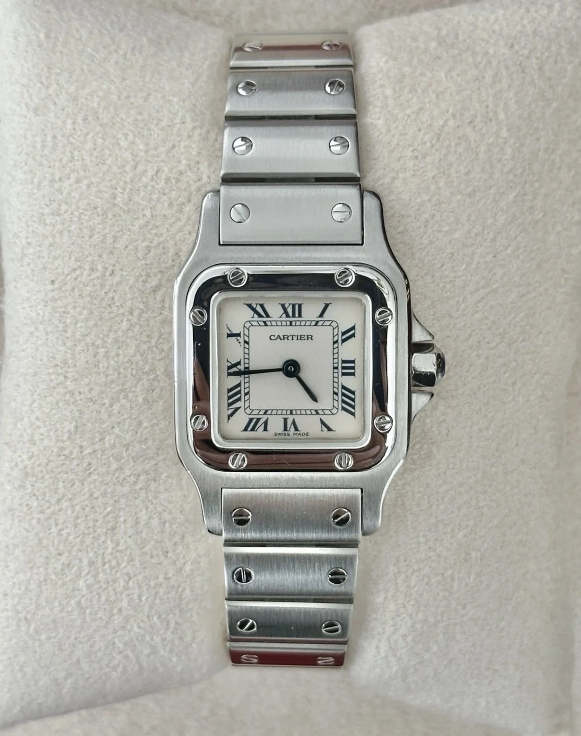 • Bracelet: Original Cartier stainless steel bracelet with signature screw design