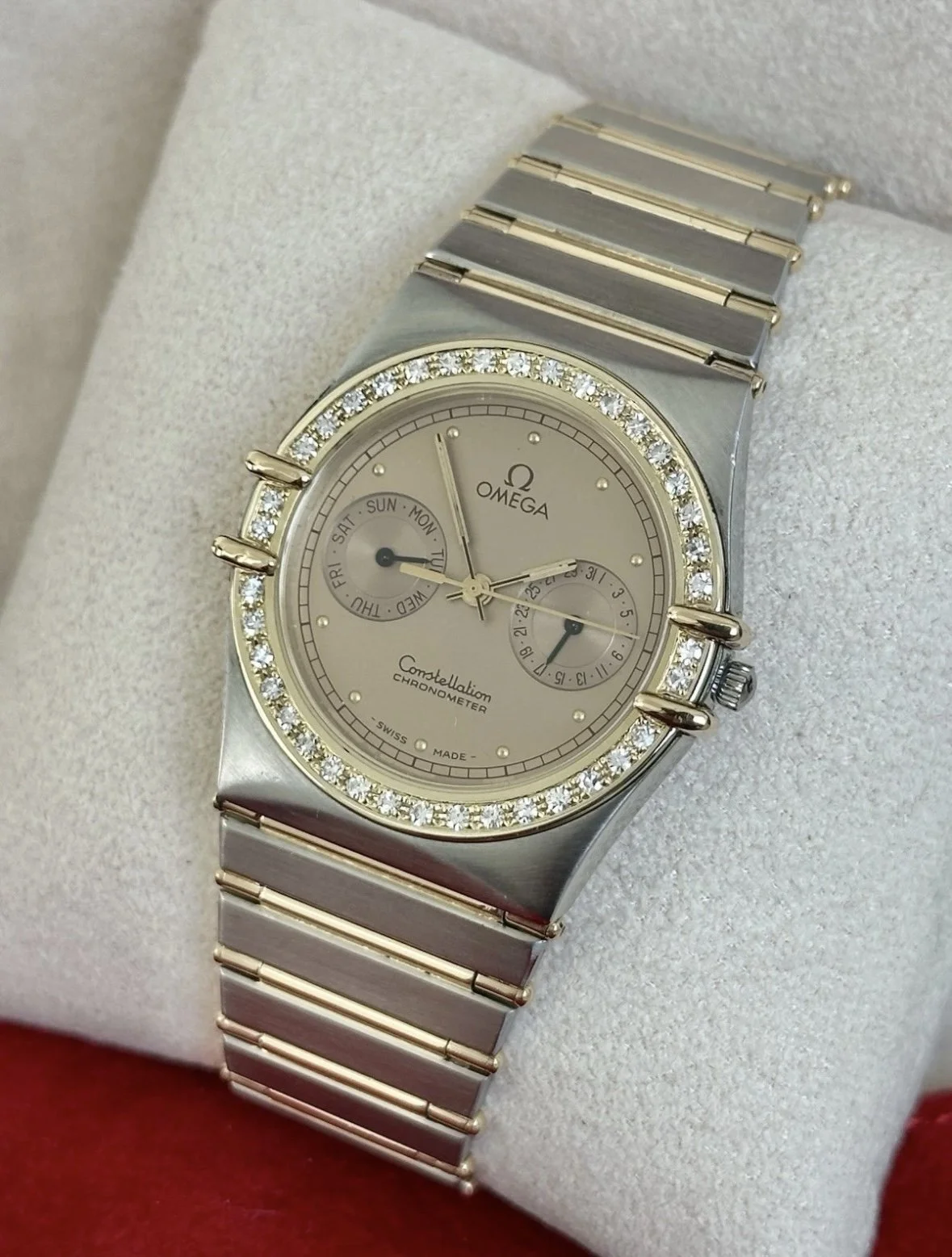 Omega Constellation “Manhattan” 33mm Diamond Quartz | 18ct Gold & Steel | Day-Date | Hibou | All Original