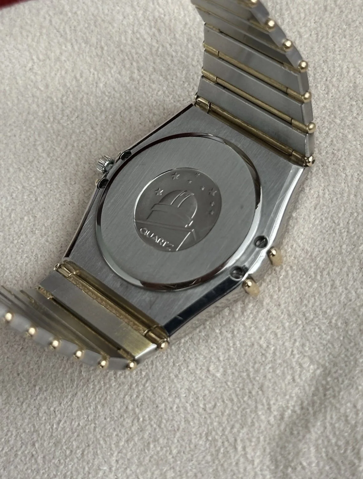 • Omega quartz calibre 1444 (reliable, low maintenance)
