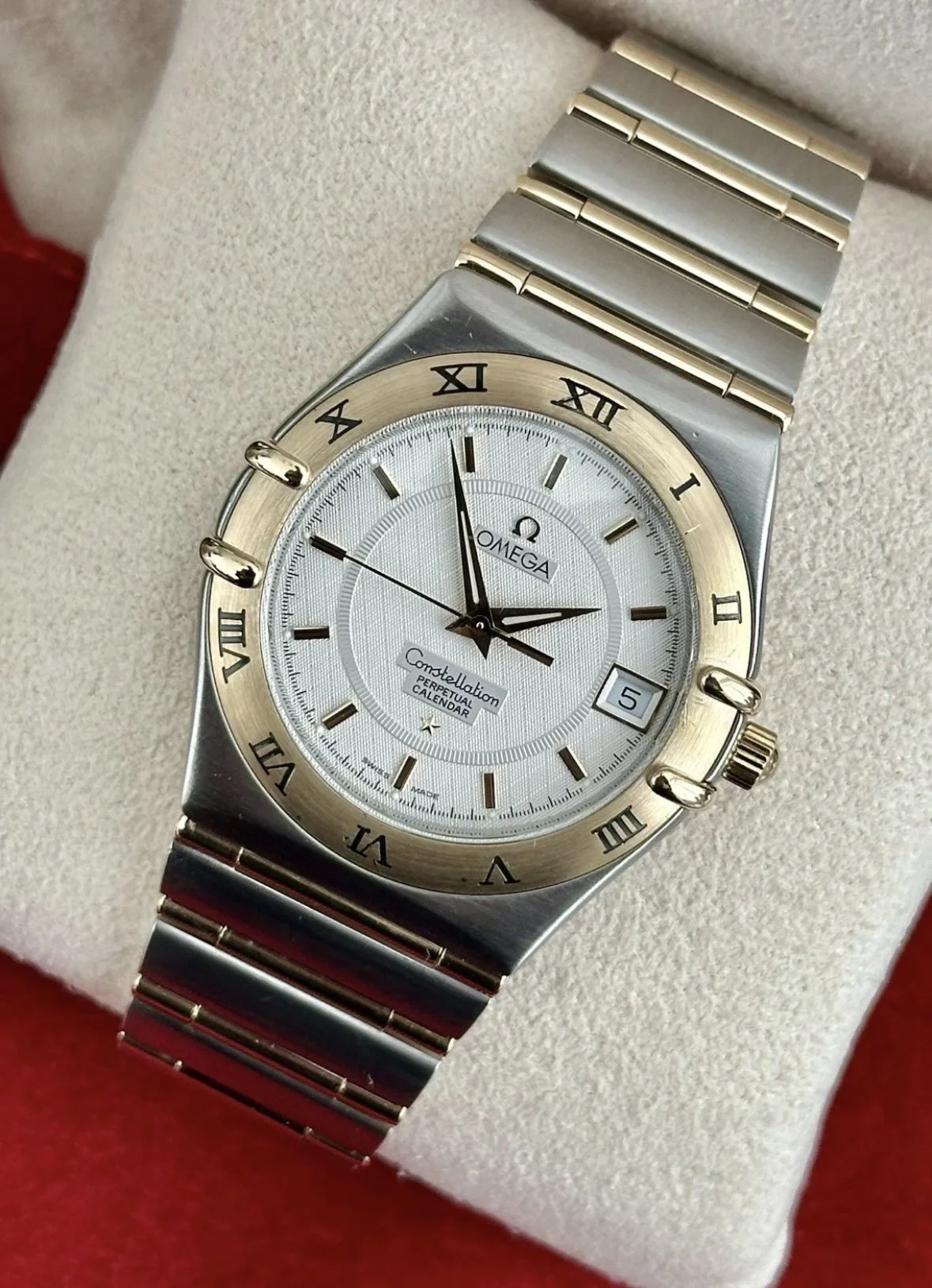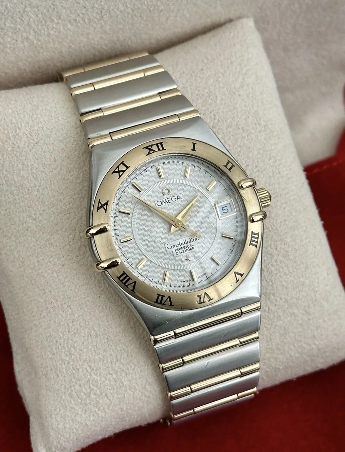 A sophisticated and highly practical timepiece, this Omega Constellation Perpetual Calendar ref. 1252.30.00 dates from the early 2000s and combines Omega’s iconic Constellation design. With its distinctive integrated bracelet and elegant case profile, the Constellation remains one of Omega’s most recognisable and refined collections.